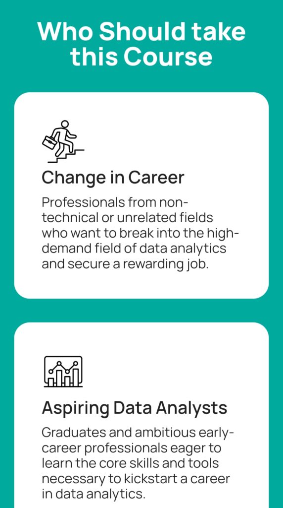 You’ll learn essential data analysis tools including Excel, SQL, Python (pandas, NumPy), Power BI, and statistical analysis. The course covers both basic and advanced features of each tool, with hands-on projects to reinforce learning.
