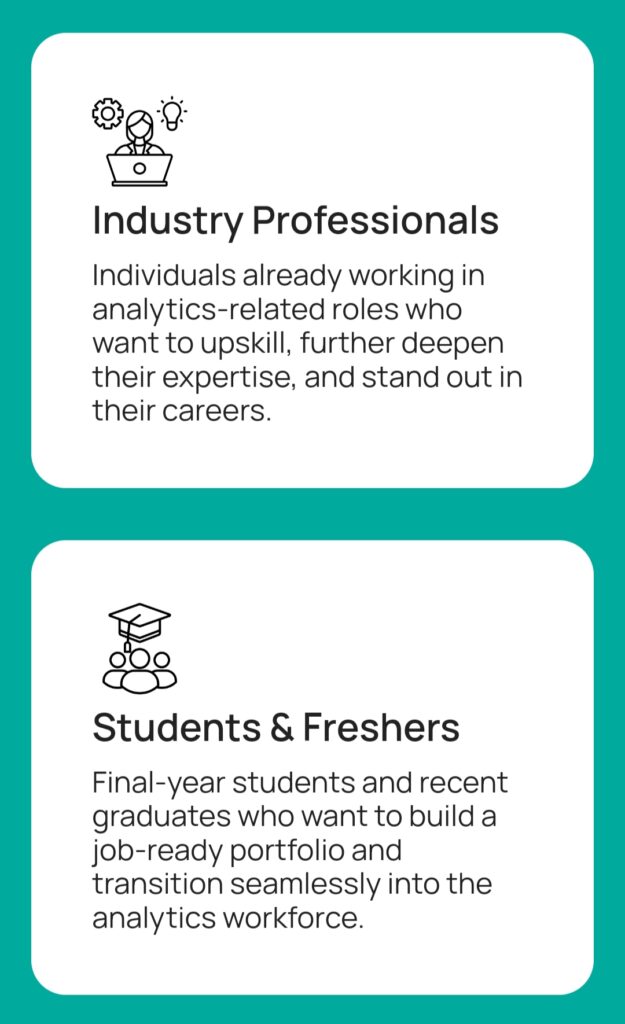We provide resume reviews, interview preparation, LinkedIn profile optimization, and 1-on-1 career guidance sessions. You’ll also get access to our community where you can network with other learners and industry professionals.