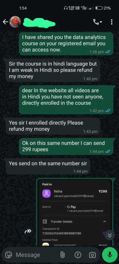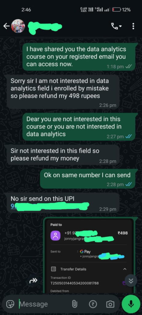 You can message on this whatsapp numbers 8607413010 and get refund instantly without a single question asked.